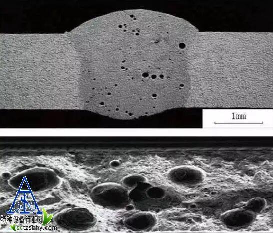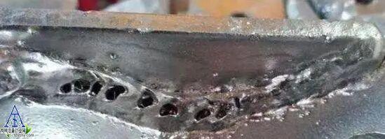 现象:在焊接过程熔化的焊缝金属中所吸收的气体在冷却前来不及从熔池中排出,而残留在焊缝内部形成孔穴。根据气孔产生的部位可分内、外气孔;按分部情况及形状的气孔缺陷,气孔在焊缝中的存在会减低焊缝强度,也产生应力集中,增加了低温脆性,热裂倾向等。