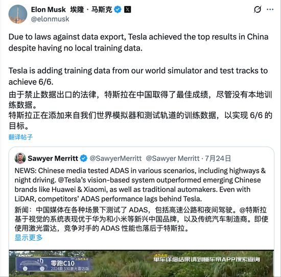 后者极尽克制但还是透露些许自豪感地写到:“由于法律禁止数据出境,特斯拉在没有本地训练数据的情况下,在中国取得了最高成绩。”再次引爆了前两天一度稍微平息的“中国车企的智驾,怎么做得还不如特斯拉?”话题。