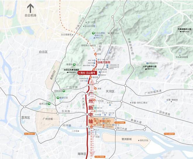 四横四纵干道路网:广州大道北向南5公里到天河北、 8公里直抵珠江新城。坐拥华南快速、广州大道、机场高速等多条城市动脉,30分钟到白云机场,行程快速覆盖全球;