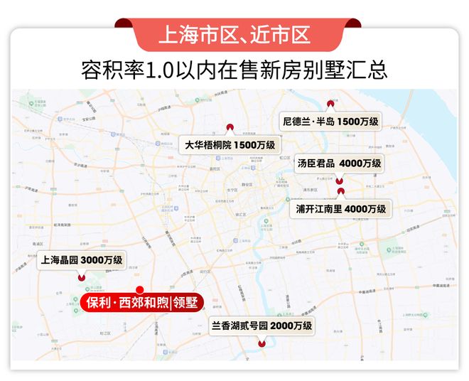 再来看上海目前在售的新房,容积率低于1.0的项目,仅有寥寥十几盘而已,而近市区的低密别墅总价1500万起步,动辄上4000万。