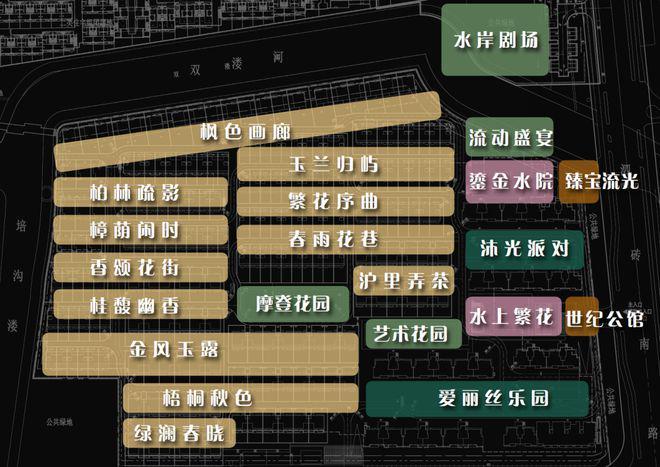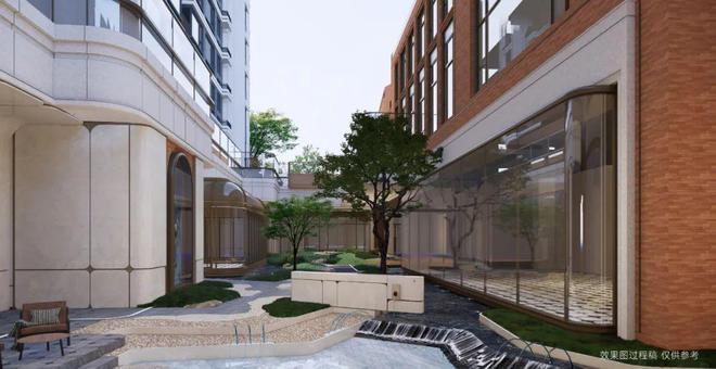 项目以引画入园为理念,将度假丰盈入心的流觞九境,树院、水院、后院,100M+沿河缤纷生活的体验场景。