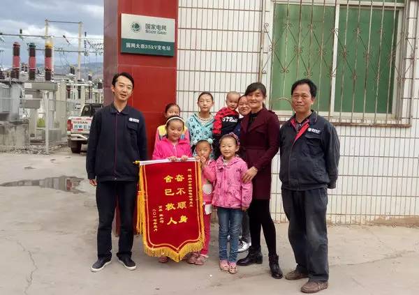 3月12日,一向安静的大崇变电站门前,巫从巧和万萍带着的6个获救的孩子,为余文和冯全彬送来了 “奋不顾身 舍己救人”的锦旗。