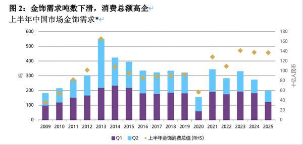 “消費者情緒與信心或許仍將是下半年金飾需求的主要驅動因素。中國居民儲蓄意願依然高企,限制了其在非必需品消費上的預算。房地産市場的持續疲軟以及外部挑戰因素或將繼續影響消費者信心。儘管如此,潛在的貨幣寬鬆政策和財政刺激政策或能提供一定助力。”世界黃金協會指出,季節性規律表明,二季度後中國金飾消費或將逐步環比回升。但經濟增長放緩的風險以及持續的行業整合進程或在下半年繼續構成壓力,尤其體現在需求噸數方面。